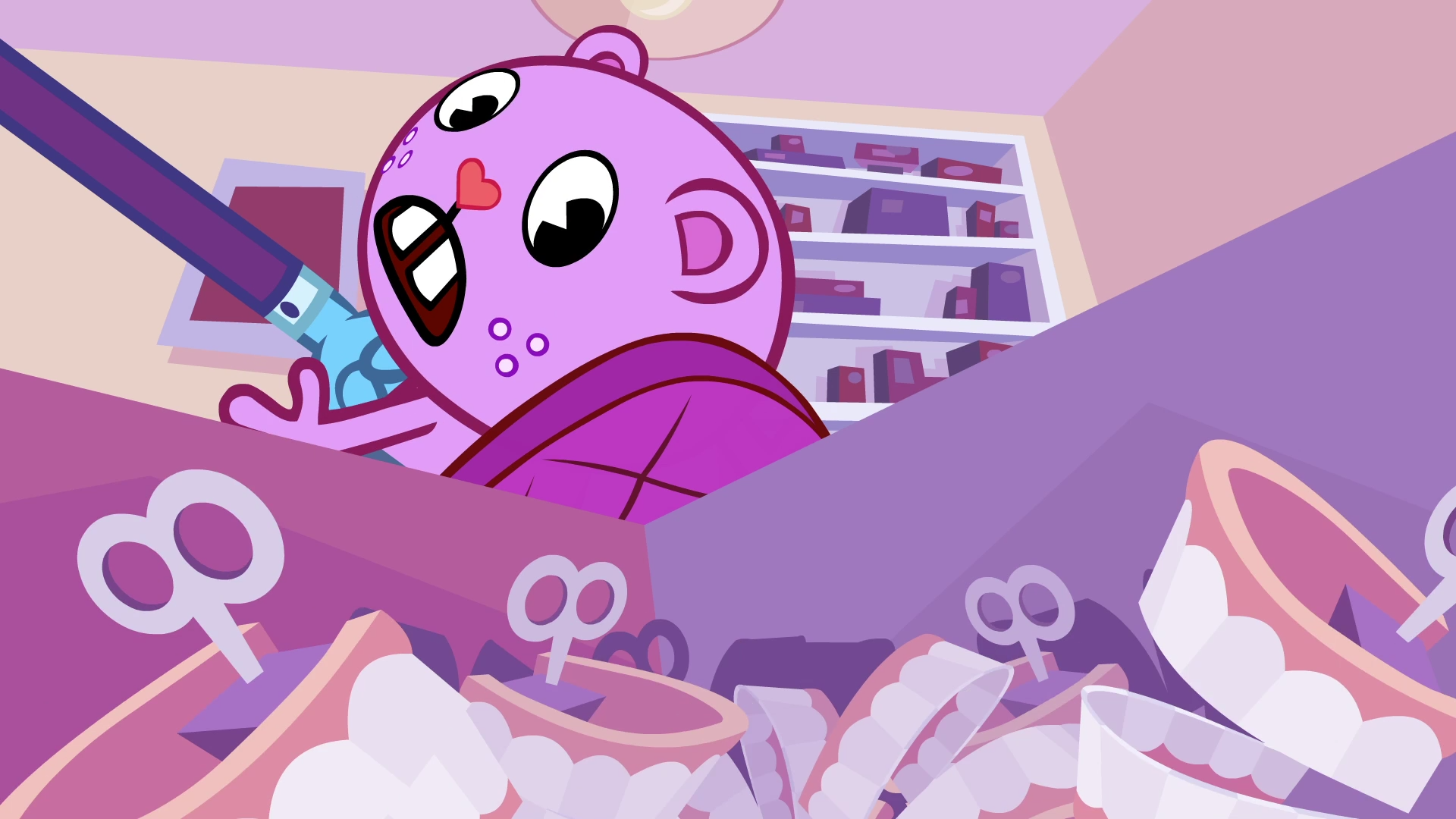 In this episode, Lumpy is the stingy owner of a toy store while Toothy is the one making the toys. During a chatter teeth related accident, Toothy's finger gets chopped off and is mistaken for a toy by Cuddles and Giggles. Seeing this, Lumpy decides to feed Toothy to a box full of the carnivorous wind-up teeth and sell what isn't reduced to a blood stain for money. Karma isn't on Lumpy's side, however, as he is crushed by a large toy shelf, a large safe and a piggy bank right before the episode ends.